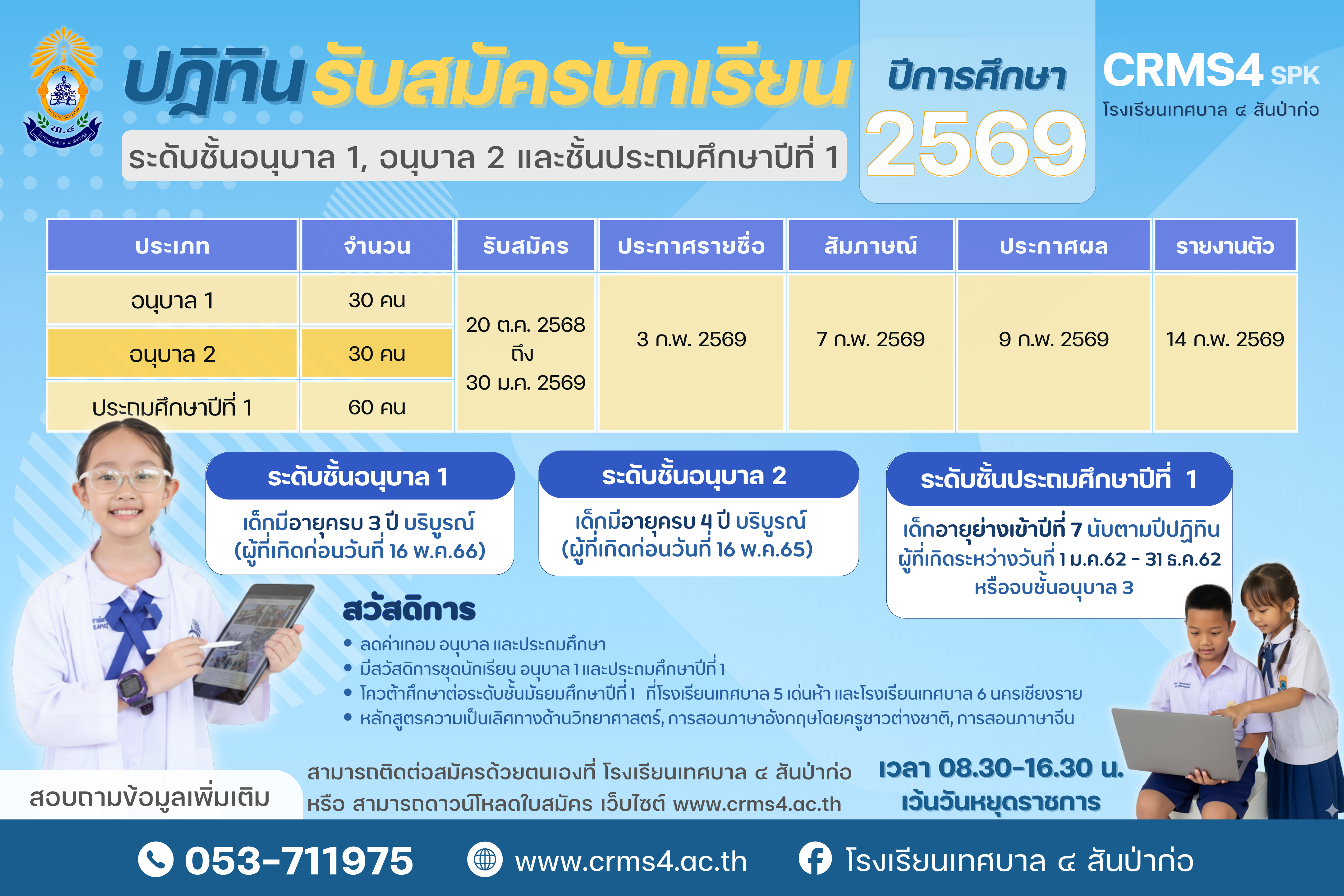 ประกาศ!! ขยายการรับสมัครนักเรียนระดับอนุบาล1 และประถมศึกษาปีที่ 1 ปีการศึกษา 2569 ถึง 30 ม.ค. 69 ตุลาคม 5, 2025