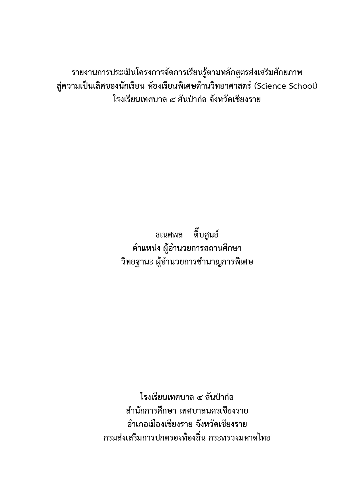 : นายธเนศพล ติ๊บศูนย์ ตำแหน่ง ผู้อำนวยการสถานศึกษา วิทยฐานะ ผู้อำนวยการชำนาญการพิเศษ
